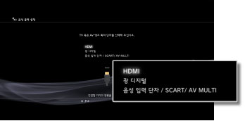 - HDCP (High-bandwidth Digital Content Protection) 규격에 대응하지 않는 기기를 HDMI 케이블로 연결하면 PS3™의 영상 및 음성을 출력할 수 없습니다.
