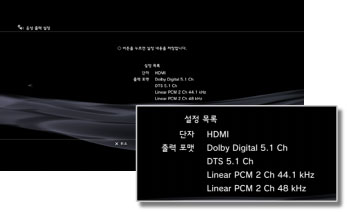 PS3™의 음성 출력을 설정합니다. 이 설정은 주로 홈 시어터용 AV 앰프와 같은 디지털 음성 출력에 대응하는 음성 기기를 연결한 경우에 사용됩니다.
