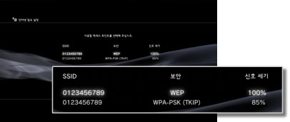 이 설정은 무선랜 기능이 탑재된 PS3™에서만 사용할 수 있습니다.
