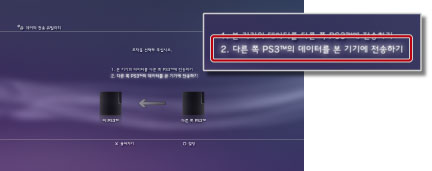 [2. 다른 쪽 PS3™의 데이터를 본 기기에 전송하기]를 선택합니다.