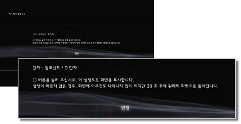 PS3™에 영상 출력 설정의 설정 내용이 저장됩니다. 계속해서 음성 출력을 설정할 수 있습니다. 음성 출력에 대한 상세한 사항은 (설정) > (사운드 설정) > [음성 출력 설정]을 참조해 주십시오.