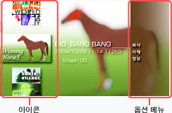 버튼을 누르면 옵션 메뉴가 표시됩니다. 관련 정보를 보거나 저장 데이터를 복사/삭제할 수 있습니다. 표시되는 옵션 항목은 선택한 아이콘에 따라 다릅니다.
