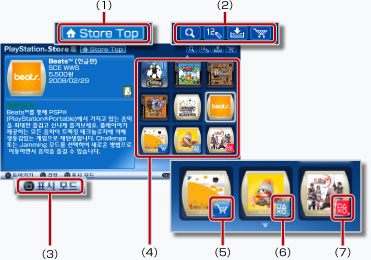 (PlayStation®Store)는 PSP™에서 이용가능한 게임, 게임용 추가 아이템 또는 비디오 콘텐츠와 같은 제품을 다운로드할 수 있는 PlayStation®Network 내의 온라인 상점입니다.