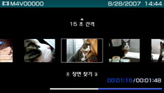 Memory Stick™ 또는 본체 메모리에 저장된 동영상 파일을 일정 시간 간격으로 섬네일로 표시하여, 원하는 장면을 선택해 재생할 수 있습니다.