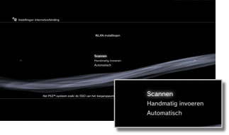 Afhankelijk van het model van het PS3™-systeem dat in gebruik is, heeft u mogelijk de optie [Automatisch]. Selecteer [Automatisch] als u een toegangspunt gebruikt dat automatische setup ondersteunt. Als u de instructies op het scherm volgt, worden de nodige instellingen automatisch bepaald. Contacteer uw lokale handelaar voor informatie over toegangspunten die automatische setup ondersteunen.