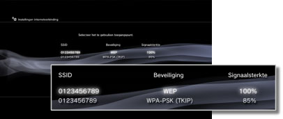 Een lijst van toegangspunten die zich binnen het bereik van het PS3™-systeem bevinden, wordt weergegeven.