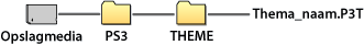 Wanneer u een thema downloadt van een website of een thema aanmaakt met een pc, maakt u een nieuwe map aan genaamd [PS3] - [THEME] op het opslagmedium en slaat u het thema op in deze map. Themabestanden moeten worden opgeslagen met de extensie [.P3T].