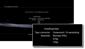 De opties voor de videomodus hangen af van de regio waar het PS3™-systeem werd aangekocht. In Noord-Amerika, Azië en andere NTSC-regio's wordt 480i-videomodus weergegeven als [Normaal (NTSC)]. In Europa en andere PAL-regio's wordt 576i-videomodus weergegeven als [Normaal (PAL)]. Voor meer informatie verwijzen wij u naar de instructies bij het product.