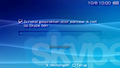 Als u [Voicemail begroeting] selecteert, kunt u het antwoordbericht zelf opnemen. Om op te nemen, dient u een audio-invoerapparaat aan te sluiten dat Skype ondersteunt voor het PSP™-systeem.