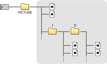 - Het PSP™-systeem kan submappen herkennen tot het tweede niveau onder [PICTURE] (Afbeelding 2).