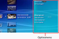 Selecteer het pictogram en druk vervolgens op de -toets om het optiesmenu weer te geven. Menu-items variëren naargelang het geselecteerde pictogram.