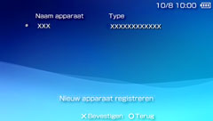 - U kunt tot acht Bluetooth®-apparaten registreren bij een PSP™-systeem. Als u een apparaat niet kunt registreren omdat u het maximale aantal apparaten hebt bereikt, dient u eerst een ander geregistreerd apparaat te verwijderen.