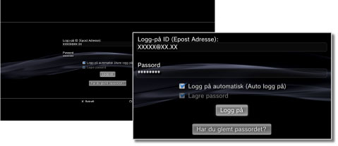Hvis du lagrer passordet, blir det forhåndsutfylt i påloggingsskjermbildet. Hvis du også angir at du vil logge på automatisk, logger PS3™-systemet deg automatisk på PSNSM når du slår det på.