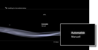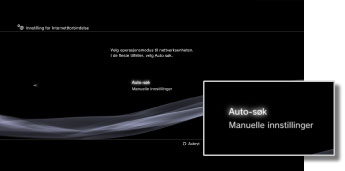 | Automatisk | Bruk funksjonen for automatisk innstilling på tilgangspunktet. Denne innstillingen er bare tilgjengelig i regioner der det selges PS3™-systemer med støtte for denne funksjonen. Velg denne innstillingen når du bruker et tilgangspunkt som støtter automatisk konfigurering. Følg instuksjonene på skjermen. |