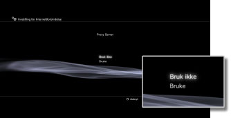 | Bruke | Bruk en proxy-server. Du kan angi proxy-serveradressen og portnummeret på den neste skjermen. |