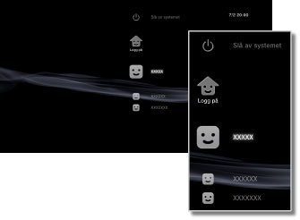 Hvis det finnes flere brukere, vises en påloggingsskjerm når systemet startes opp. Velg ikonet til brukeren du vil logge på som.
