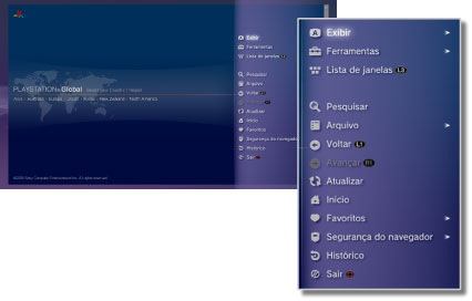 . Os itens de menu diferem no modo de navegação e no modo janela.