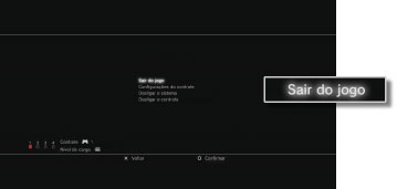 Durante o jogo, pressione o botão PS no controle sem fio e, depois, selecione [Sair do jogo].