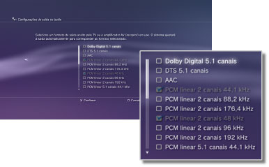Confirme os formatos compatíveis com seu dispositivo de áudio. |