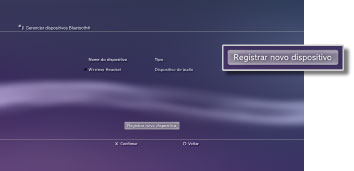 Selecione o dispositivo que deseja registrar ou emparelhar com seu sistema PS3™. |