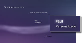 Selecione o método de conexão do sistema com a Internet. Ao fazer uma conexão com fio utilizando um cabo Ethernet, você pode seguir as instruções na tela para selecionar automaticamente as configurações básica.