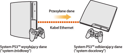 Dane zapisane w pamięci masowej jednego systemu PS3™ można obecnie przesyłać (kopiować lub przenosić) do pamięci masowej innego systemu PS3™ przy użyciu kabla Ethernet.