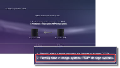 Wybierz opcję [2. Prześlij dane z innego systemu PS3™ do tego systemu.].