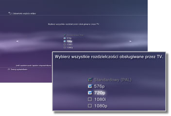 Opcje trybu wideo różnią się w zależności od regionu, w którym została zakupiona konsola PS3™. W Ameryce Północnej, Azji i innych regionach, gdzie używany jest tryb NTSC, tryb wideo 480i jest wyświetlany jako opcja [Standardowy (NTSC)]. W Europie i regionach, gdzie używany jest tryb PAL, tryb wideo 576i jest wyświetlany jako opcja [Standardowy (PAL)]. Szczegółowe informacje na ten temat można znaleźć w instrukcji dołączonej do urządzenia.