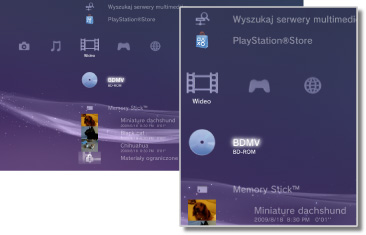 (pliki zapisane w pamięci masowej systemu) | Odtwarzanie plików wideo zapisanych w pamięci masowej systemu PS3™. Wyświetlane są miniatury. |