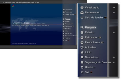 . Os itens do menu são diferentes no modo de pesquisa e no modo de janela.