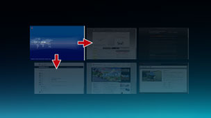 A janela é apresentada ocupando toda a altura e largura do ecrã. Quando se abre várias janelas, estas são apresentadas lado a lado. É possível alterar as janelas com o botão L2 ou R2.
