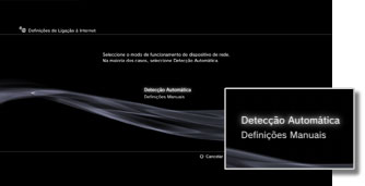 | Automático | Usa a funcionalidade das definições automáticas do ponto de acesso. Esta definição está disponível apenas nas regiões em que são vendidos os sistemas PS3™ que suportam esta funcionalidade. Seleccione esta definição quando utilizar um ponto de acesso que suporta uma configuração automática. Siga as instruções no ecrã. |