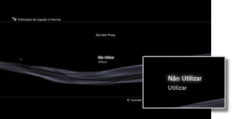 | Utilizar | Utiliza um servidor proxy. Pode introduzir o endereço do servidor proxy e o número da porta no ecrã seguinte. |