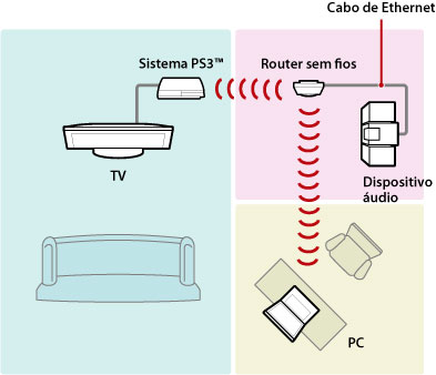 Ligue o sistema PS3™ a um Servidor multimédia DLNA através de uma ligação com fios ou sem fios.