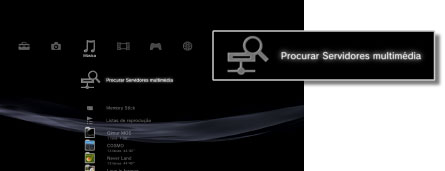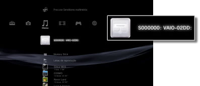 Quando liga o sistema PS3™, os Servidores multimédia DLNA pertencentes à mesma rede são detectados de forma automática e os ícones dos servidores detectados são apresentados em