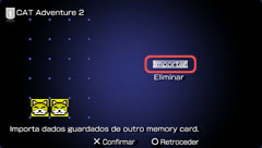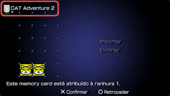 Pode importar dados guardados de outro memory card interno para o memory card interno do jogo que está actualmente a jogar. Pode também eliminar os dados gravados que foram importados para o memory card interno. Para mais informações acerca de memory cards internos, consulte