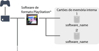 Dois memory cards internos (para as ranhuras 1 e 2 do MEMORY CARD) são automaticamente criados quando inicia o software do formato PlayStation® transferido da PlayStation®Store. Os memory cards são guardados utilizando o mesmo nome como no software do formato PlayStation®.