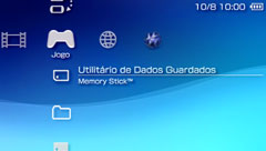 | Jogo PSP™ | Seleccione o ícone do jogo cujo manual pretende visualizar, prima o botão e seleccione [Manual do Software] do menu de opções. |