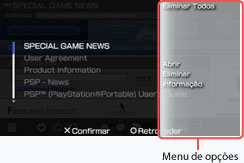 No menu de opções, pode ver informações ou apagar itens do [Histórico].