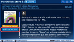 Seleccione o item (pago ou grátis) que pretende transferir da (PlayStation®Store). Será apresentada informação detalhada sobre o item.