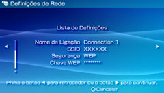 Pode criar definições de rede para serem usadas quando se liga à Internet através de um ponto de acesso e guardá-las no sistema PSP™. Pode guardar até 10 ligações.