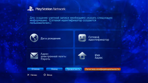 (PlayStation™Network) и создайте учетную запись, следуя инструкциям на экране.