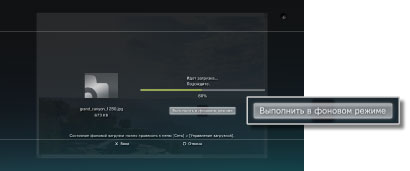 Загрузка в фоновом режиме позволяет выполнять другие операции во время загрузки нескольких элементов данных с большим размером файлов. Эта функция доступна, только когда на экране, отображаемом при загрузке, отображается команда [Выполнить в фоновом режиме].