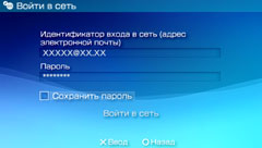 Введите идентификатор входа и пароль, которые использовались в системе PS3™ для учетной записи на сервере PlayStation®Network.