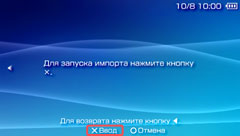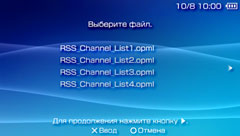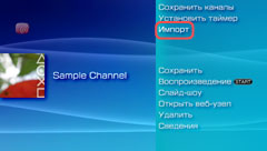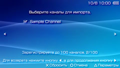 Выберите канал и нажмите кнопку Если файлы OPML, которые вы хотите импортировать, сохранены на карте Memory Stick™, вставьте карту Memory Stick™ в систему PSP™.