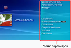 | Сохранить каналы | Выбор нескольких каналов и сохранение элементов, которые содержатся в этих каналах, на карте памяти Memory Stick™ |