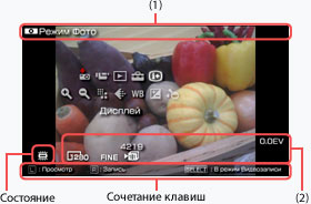 , когда камера находится в режиме ожидания. Набор отображаемых значков зависит от выбранного режима камеры: режим фото, режим видеозаписи или режим просмотра. Отображаемые значки также определяются типом камеры.