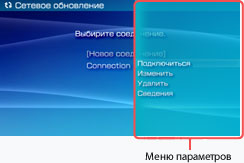 отобразится меню параметров. С помощью этого меню можно изменить настройки соединения или удалить соединение.