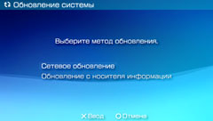 Использование данных обновления, сохраненных на носителе информации (в памяти системы, на UMD™, Memory Stick™ или другом устройстве).