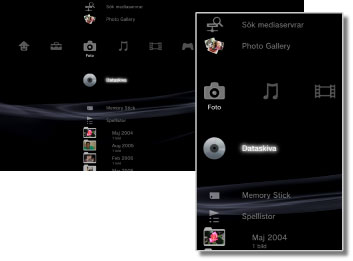 Digitalkamera | Visa bildfiler som sparats på en digitalkamera som är kompatibel med PS3™-systemet. |